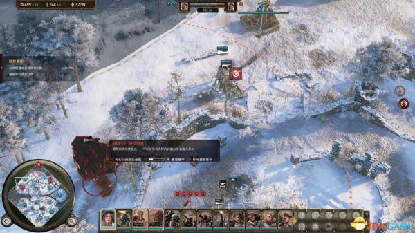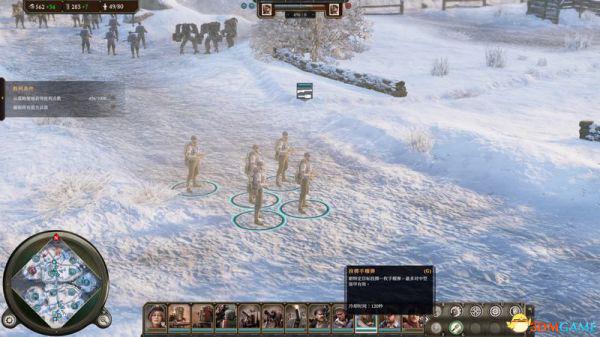 黄框:所有的单位都可以在这里看到并点击选取(你也可以自行编队或者在地图上直接点击选取),右侧的圆圈就是该单位可以进行的行动和技能。