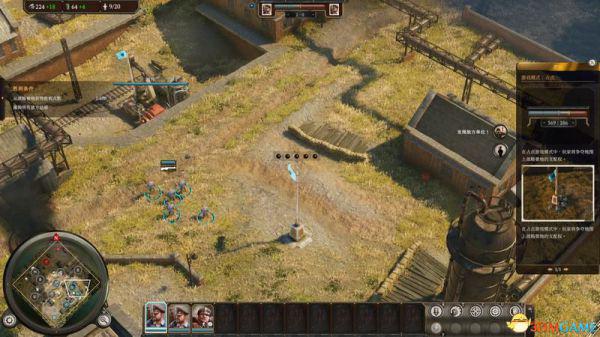 查看小地图,可以看到地图上的石油、铁、战略点(旗帜)和资源道具(箱子)。
