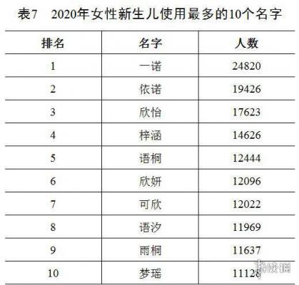 2020年出生并已经进行户籍登记的新生儿名字中,使用频率最高的50个字依次为“梓”“子”“宇”“辰”“一”等。与2019年相比,“玥”“伊”“昕”“可”等字受到新生儿父母的青睐。