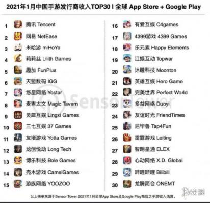 2021年1月手游发行商收入排行榜怎么样 2021年1月手游发行商排行榜