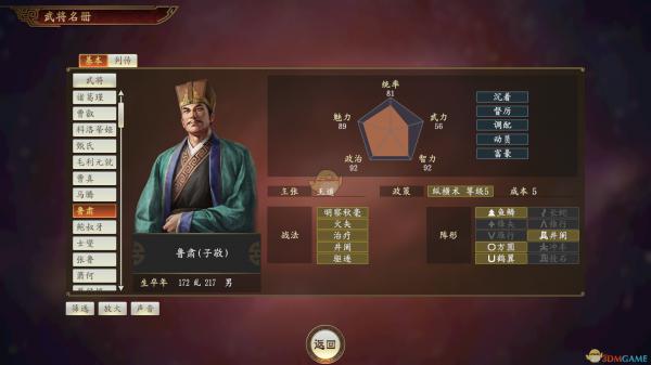 《三国志14》鲁肃武将介绍: