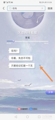 4.再次搜索“在吗”,会出现另外一首歌,每次搜索出来的歌曲都是和恋爱或失恋相关。
