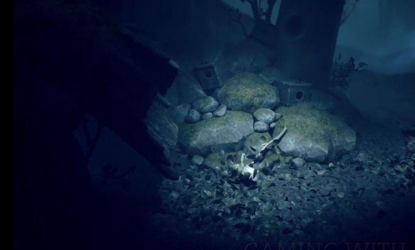 影子2 位置:森林中段,从树洞滑轮后,左边底下可以进去,里面有一个影子和死去的老鼠。