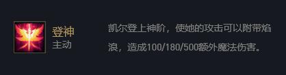 凯尔蓝量满后启动技能直到死亡,技能效果使其普攻增加攻击特效,对敌人造成AOE输出。