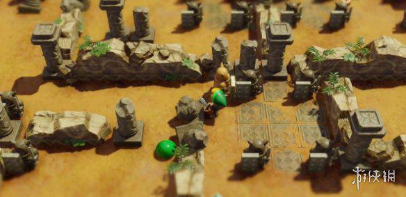 先从地道出口往北走,来到南方神殿,这里挡路的雕像靠近攻击的话会开始移动(如果没动,可以去其他位置转几圈再回来),可以用盾挡住他们的冲撞,等待他们让路,一路走到最深处的神殿。