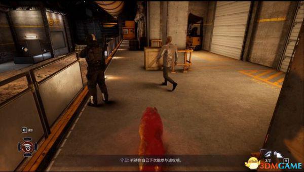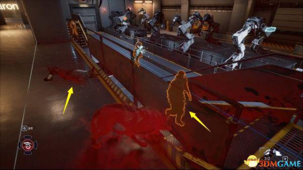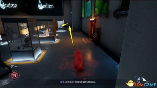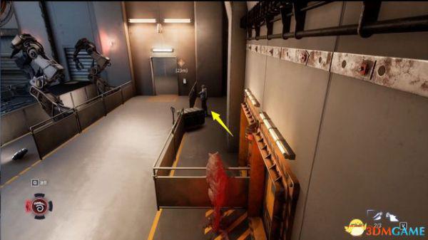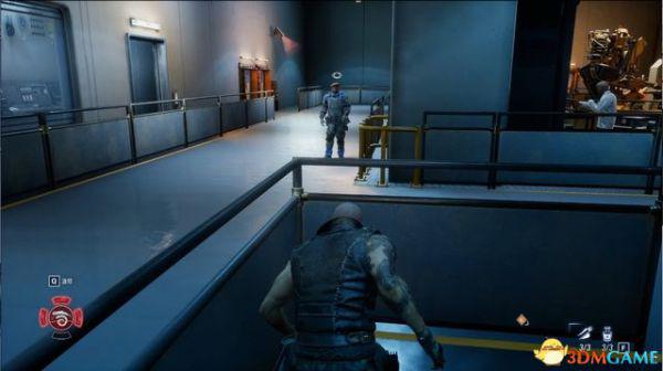 进来之后,先往前走,等右边的研究员走开之后,暗杀左边的守卫。