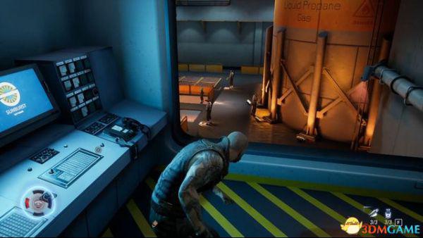 对话完后,成功潜入,进入旁边的通风管道,先用电脑打开门和电梯。
