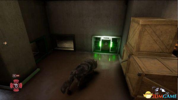 调查完之后,返回,进入下一个房间。直接从右侧溜进前面的通风管道里。