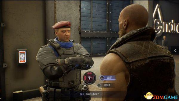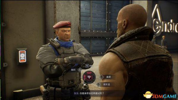 这一关开头可以使用人形态进行潜入,到入口处和队长对话,选择【询问】。