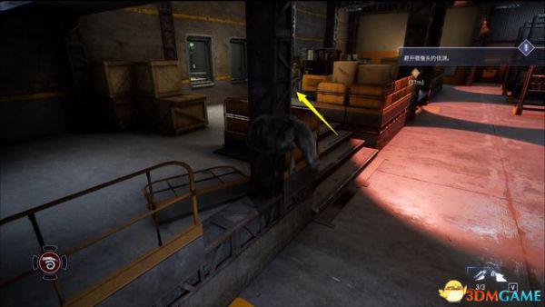 然后直接往前走,进入任务地点,路上注意躲避红色灯光。