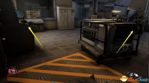 之后直接进门,到达下一区域,避开几个研究员的视线,到控制台处操作。