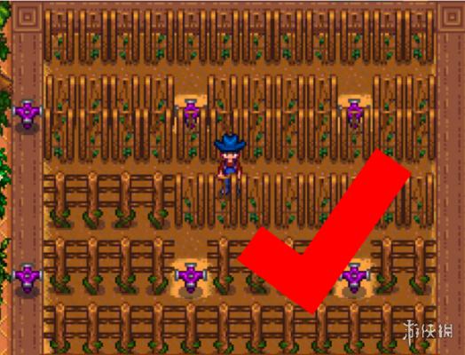 原因在于收货时,横着种只需要按住x走一遍就收获作物,而竖着种收获繁琐得多。
