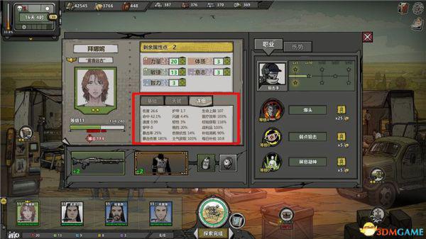 智力:每1点提升1%治疗效率,2%经验,1%战利品,并减少2%补给消耗量。
