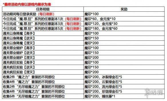 活动内容:断罪消业,斩除本不属于现世的凶邪之物。获取强大的无尽暗魔之力!