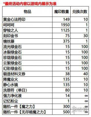 活动内容: 使用魔印兑换黄金心法符印、呵呵呵、60级套装锻造材料、刻印金书、锻造材料文券、暗魔套装等海量物品!
