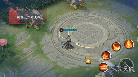 小袖之手向指定方向飞踢发射金针,对路径上敌人造成70(+55%额外攻击) 点物理伤害,同时对其中靠近自己的敌人额外造成持续1.5秒的40%减速效果,对其中远离自己的敌人造成0.7秒眩晕效果。