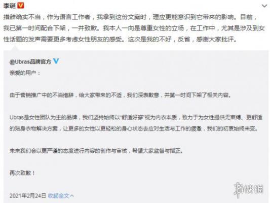 李诞带货的女性内衣品牌道歉是怎么回事?近期,李诞带货的ubras女性内衣品牌就营销推广问题道歉,李诞也转发道歉了,那么到底是怎么一回事呢?下面就让小编为大家介绍一下吧。