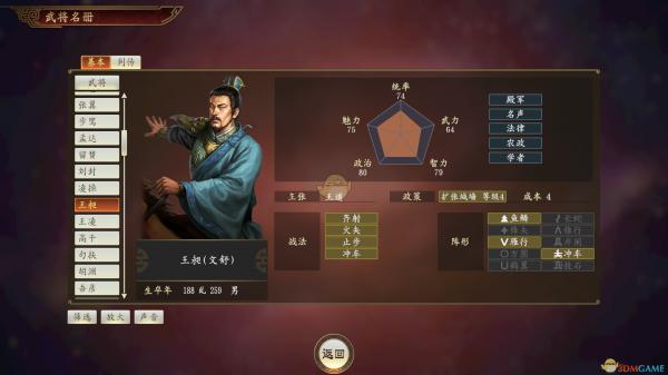 评价:名声对小势力,都是神技,而像王昶这种,攻完城,顺势入城,扩格子不用等召唤,是个优质副手,至于王道学者,大概跟小势力没什么关系……出生地晋阳,扩张城墙,在晋阳也是很有用的……