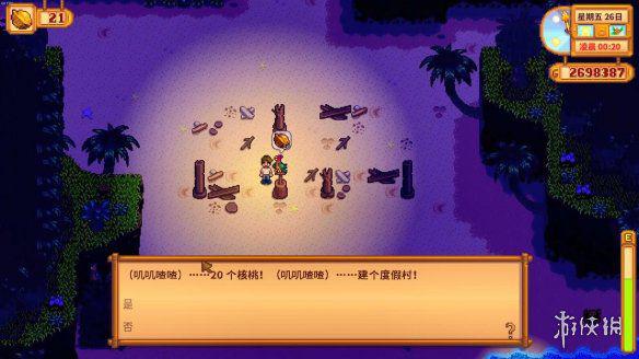 8. 修建度假村,修好之后鹈鹕镇的人会来姜岛上玩,同时会解锁码头右下角的一块新地区 20个,酒店老板还会来卖东西。
