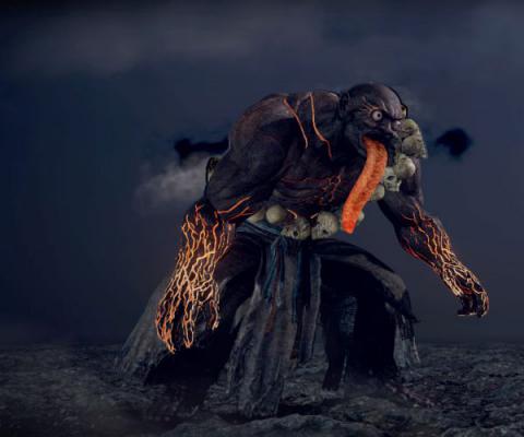 二代的新朋友,小饿鬼在杂兵里算是很强的,动作比较神经,会吐**雾,啃咬玩家或倒地的同类后会变成大饿鬼,但弱点也很明显,血薄,用太刀剑气 大太刀轰雷之类的削精强的招式很容易把它震倒,震倒后处决就完事,注意,常暗中小饿鬼倒地时会自动吐出一团**雾。