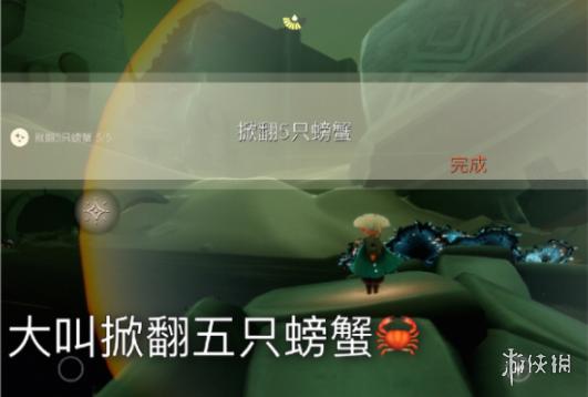 掀翻五只螃蟹,大叫就行,任务也很简单;