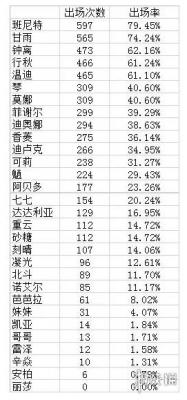 出场率=出场次数/761,由于其受角色持有率影响,请结合持有角色综合看待。