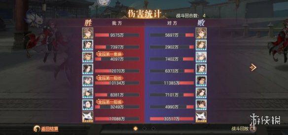多核输出,阵容暴力。战斗成功拖入四回合,从承伤可以看出战况惨烈,魏国辅助将的回血远没有对方姜维邓艾吸血来的多,承伤方面惊人就不得不说到曹丕羁绊的减伤和福牛的盾起到了至关重要的作用。