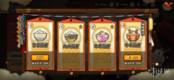 2、吉吉元宵、大大元宵、年年元宵每天开启一个;第一关卡在36秒内通过,给1张牛牛元宵挑战卡,可开启特殊模式:牛牛元宵!