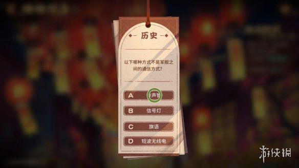 以下哪种方式不是军舰之间的通信方式?这是碧蓝航线在2月25日更新后于开启的元宵活动啾啾灯会的问题。那么军舰之间的通信方式有哪些呢?接下来就让我们了解一下吧。