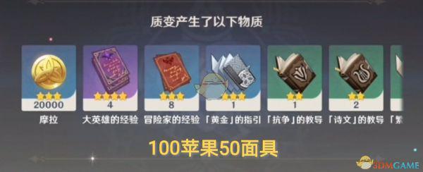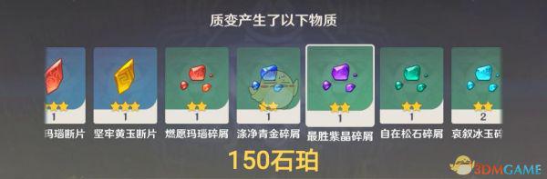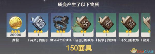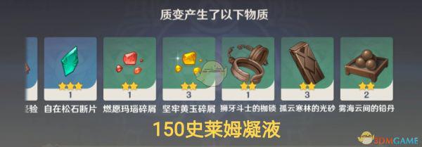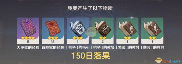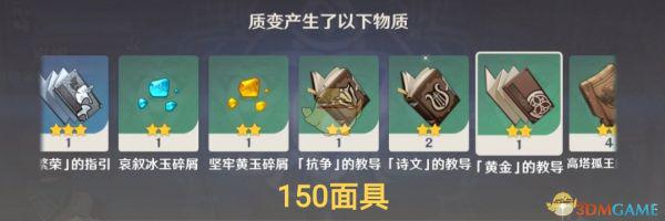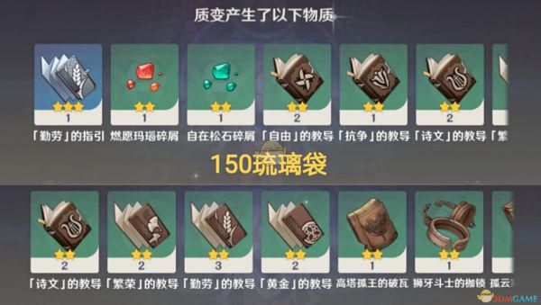 产出结果比较倾向于“人物相关”的材料,如:角色经验书、角色天赋书,也会有少量不等的摩拉、精炼矿、突破石、武器突破材料等。