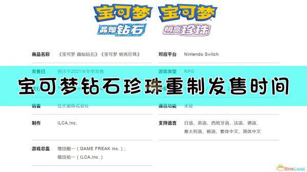 《宝可梦:晶灿钻石/明亮珍珠》发售日期介绍: