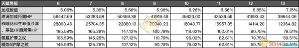 ※ 注:以我个人来说,只需要参考表中9级天赋,精炼1护摩之仗的数据(110.79%),保证不要超出即可,当然也很难超出。