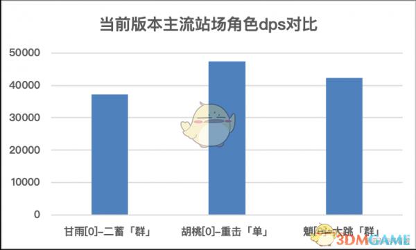 由上图不难看出,即使面对甘雨这个唯一的二蓄弓武器角色,胡桃的站场输出效率也丝毫不弱下风,但仍需注意元素战技的持续时间来进行站场输出。