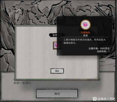接下来就是剧情,然后选【岂能空手而归】,打一只蛤蟆获得一枚【月精魂丹】和一个十年期限的后天气运【月枝】,效果如下。