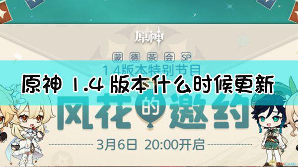 《原神》的1.4版本目前正式推出时间还没有公布。但是1.4版本的前瞻直播将会在2021年的3月6日晚上8点正式公布。到时候可以前往直播间收看关于1.4版本的具体内容。还可以获得原石奖励。