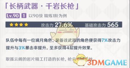 从面板去看,只要注意下配队,高阶千岩枪就可以甩开同类4星武器几条街,璃月的枪C如果没有5星武器,都可以选择千岩枪