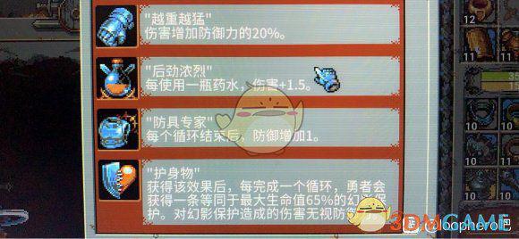 天赋方面,护身物是战士天赋最后的荣光,必选,这个套路就是靠高额血量加护身物约等于两条命,药水和越重越勇作为提升后期输出的手段也尽量选。