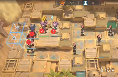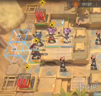 这一关的主要难点在于隐身的“红标”狙会攻击裸露在沙尘暴中的敌人,因此部署必须放在土石结构后面,这样的近战位只剩下门口两个,再加上开场压力就不小,很容易漏怪,因此想自己打的玩家建议可以多带些远程补充伤害。
