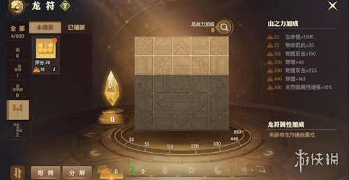 每个龙符块都由元素之力和随机属性构成,随机属性越高,格子数越少的龙符块评分越高。