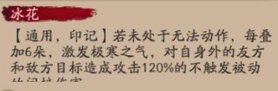【通用,印记】若未处于无法动作,每叠加6朵,激发极寒之气,对自身外的友方和敌方目标造成攻击120%的不触发被动的间接伤害
