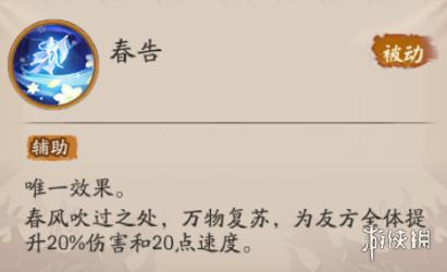 春风吹过之处,万物复苏,为友方全体提升20%伤害和20点速度。