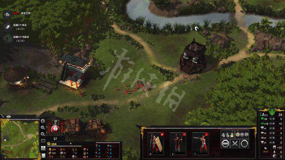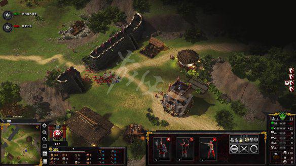 出5斧兵5弓手以后敌方部队开始进行骚扰,注意防御。