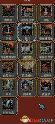 巫妖宫殿,在第一个boss(巫妖)出现时,自动刷新在(营火)附近。可以选择在(营火)周围摆满其他地块,阻止(巫妖宫殿)的产生。