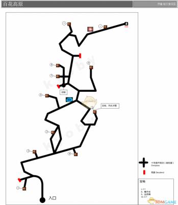 《勇气默示录2》中序章的百花高原迷宫是非常复杂的一片区域,很多玩家都不太清楚序章的百花高原迷宫到底应该怎么走,其实百花高原迷宫可以获得的道具固定有橡木杖和法师棒,某个地区需要把树砍掉才能进去。地图如下。