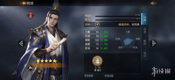 老规矩,先来看看郭嘉的基础属性,其中力量属性最差,物理防御能力中等,但其谋略属性和成长十分优秀,这也决定了其要走谋略加成的方向,另外值得注意的是,郭嘉的速度属性也算良好,这就意味着当其作为辅助,需要打出控制或者保护队友的技能时,能够有着较快的出手速度,在与其他队伍的对战中抢占先机。同时因为其尚可的防御属性和极佳的谋略属性,可以携带一些吸引火力的嘲讽类技能,替队友分担伤害。