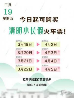 清明小长假2021火车票什么时候预售?清明小长假作为春节后的第一个小长假,很多人想知道什么时候可以开始买火车票,下面小编给大家带来清明小长假2021购票时间一览,一起来看看吧。