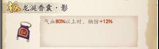衣服上的饰品——极品的龙涎香囊较容易获得性价比高,有12%的防御加成且大多数时候保持80%气血条件不难。