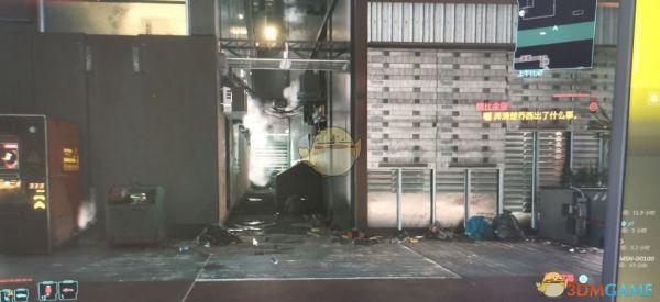 在如图所示小巷的垃圾桶后面找到尸体后回去找刚才的npc(顺带一提这人超强)击杀后前往
