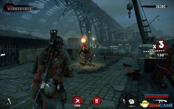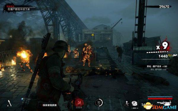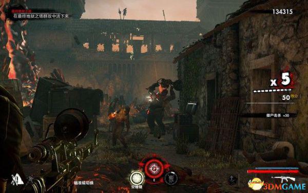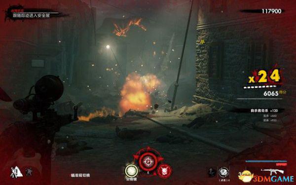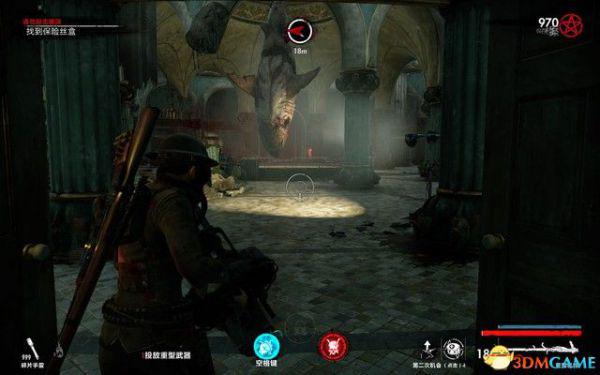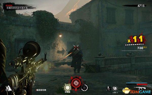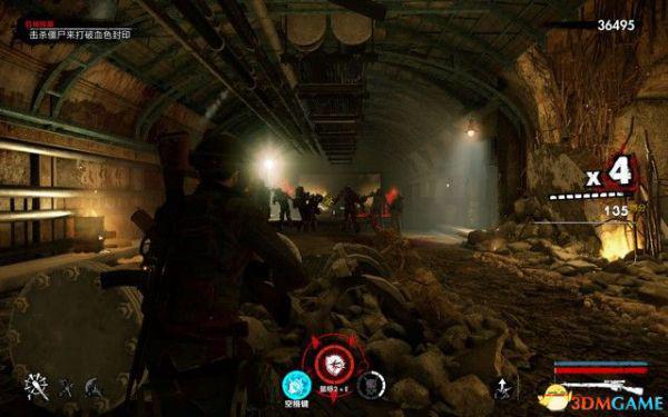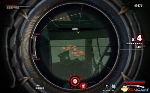 过一会会有纳粹僵尸狙击手出现,这种敌人拿着狙击枪,能在远处击杀你,