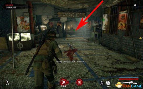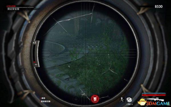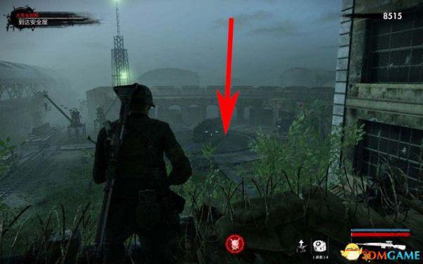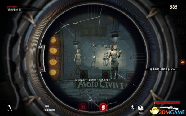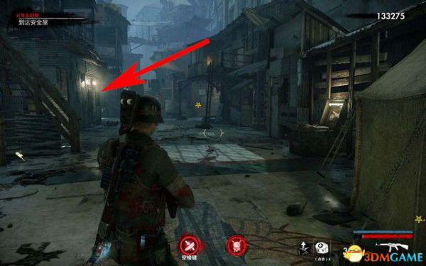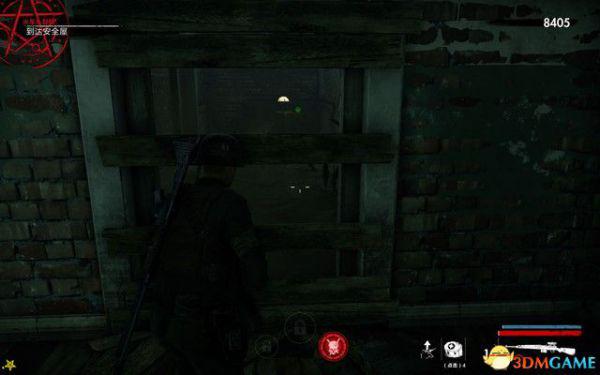 开局可以使用狙击手狙杀掉下面的僵尸,进入安全屋抵达前面的广场,